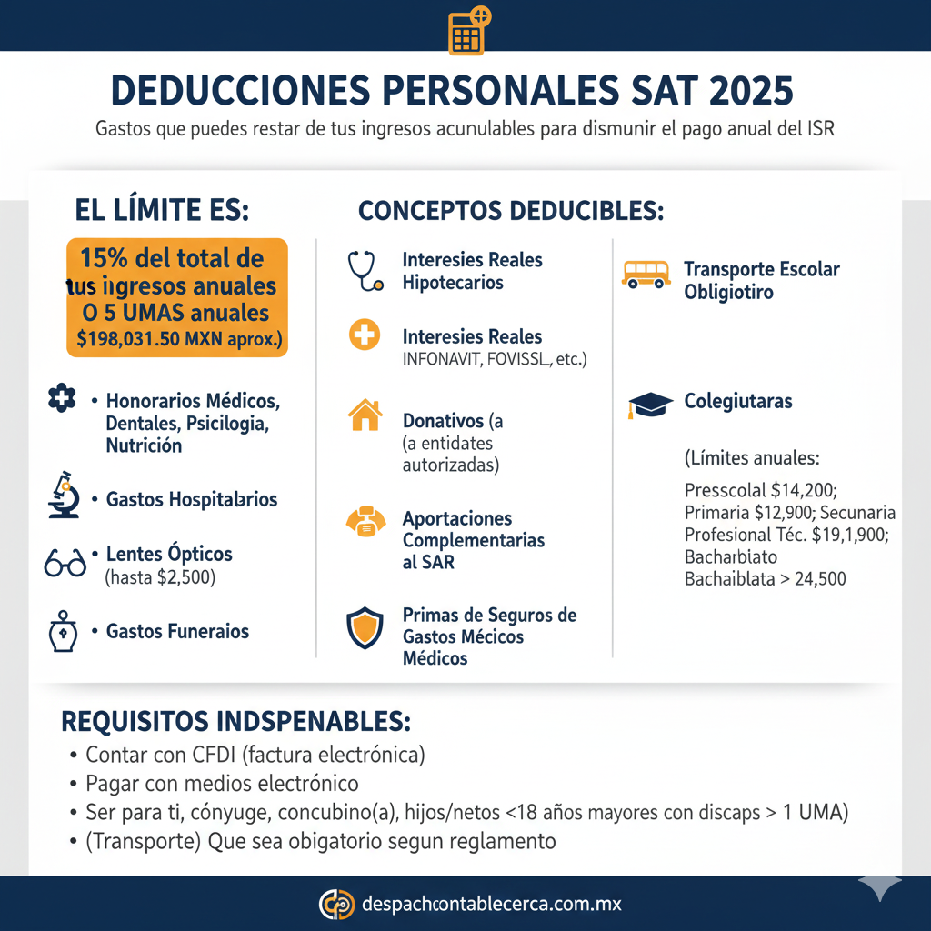 - ¿Cuáles son las deducciones personales SAT 2025?